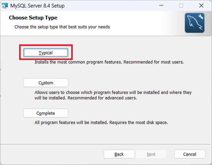 ③インストールタイプの選択画面となるので「Typical」をクリックします。
