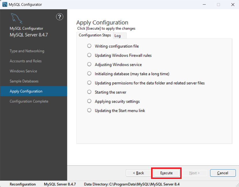 - 1) cd “C:\Program Files\MySQL\MySQL Server 8.4\bin”
