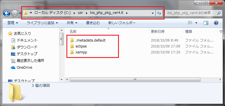 “②”で作成された「kis_php_pkg_2023」フォルダをCドライブに作成した「usr」フォルダの中に移動しましょう。