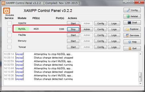 Step3. XAMPPを利用したMySQLサーバの起動及び動作確認