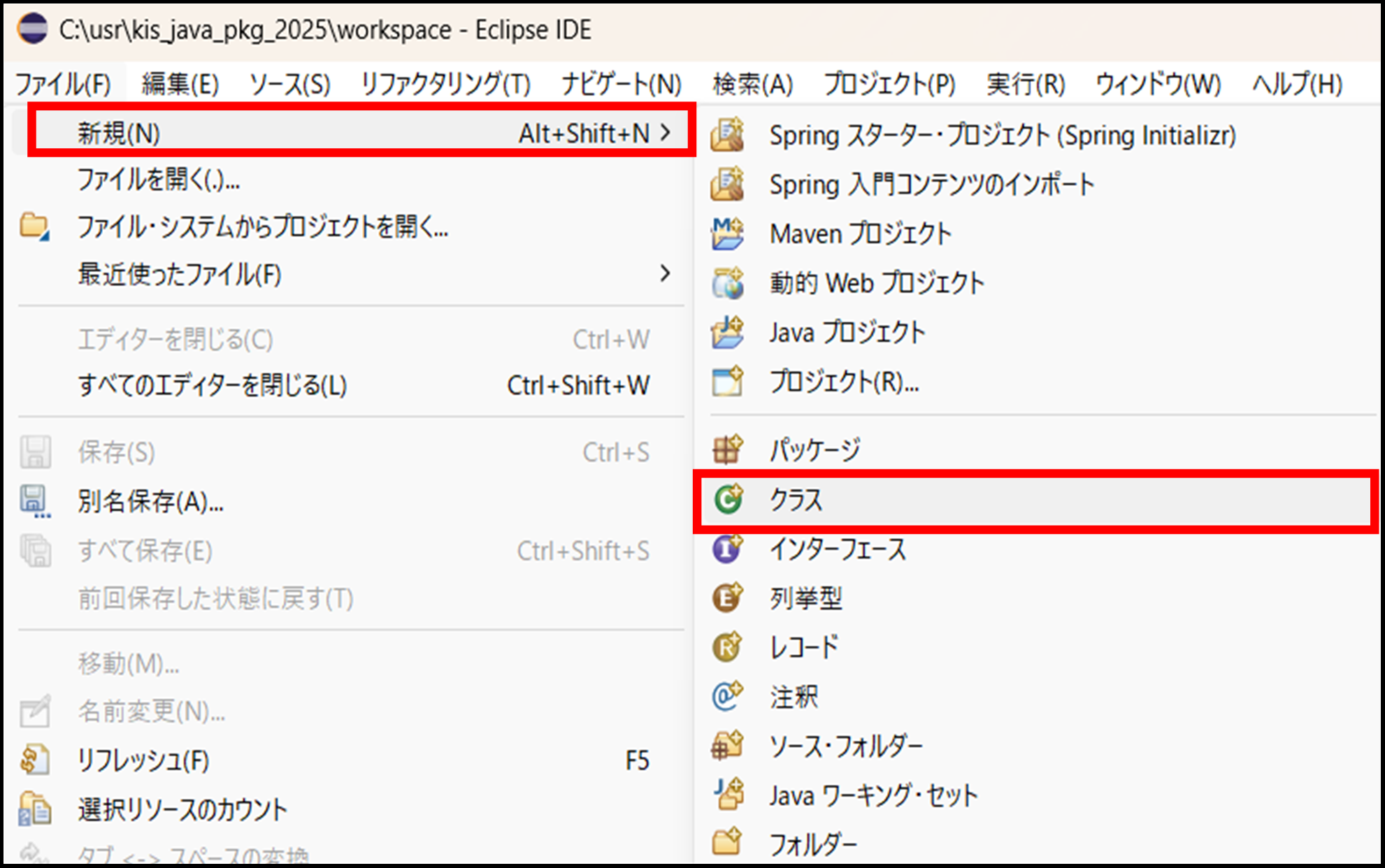 ファイル > 新規 > クラス