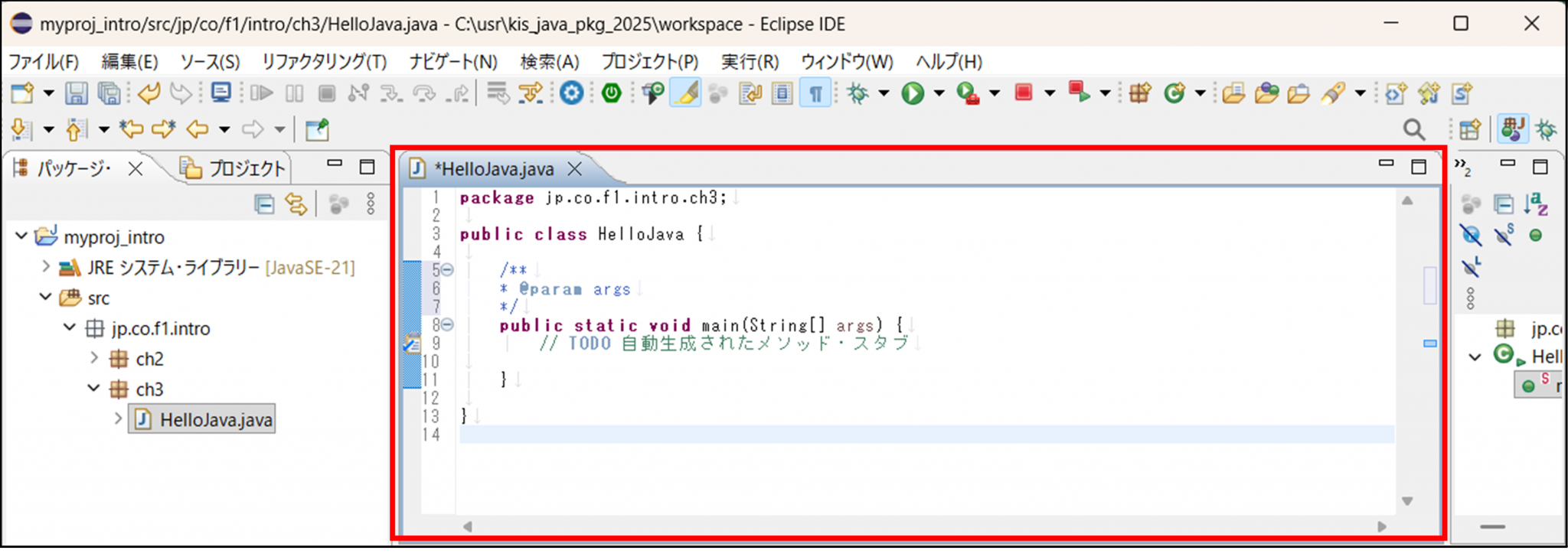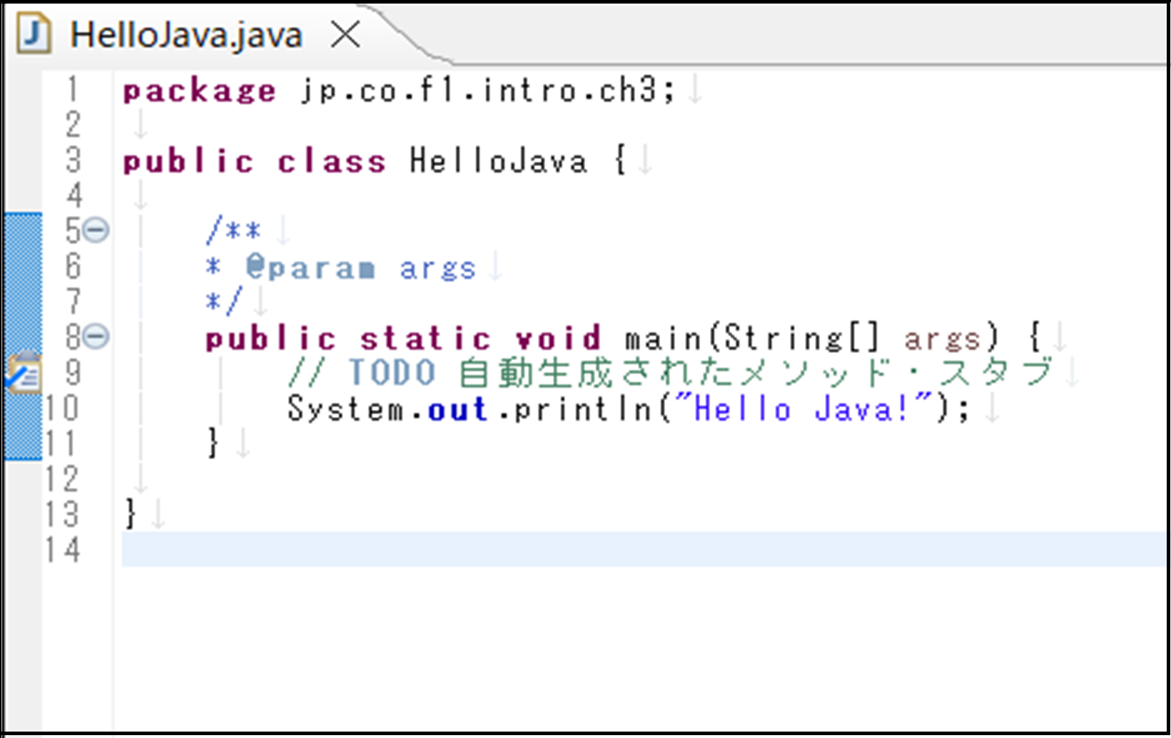 正しく作成されていれば、図 3.1.4のようにJavaファイルが開かれます。