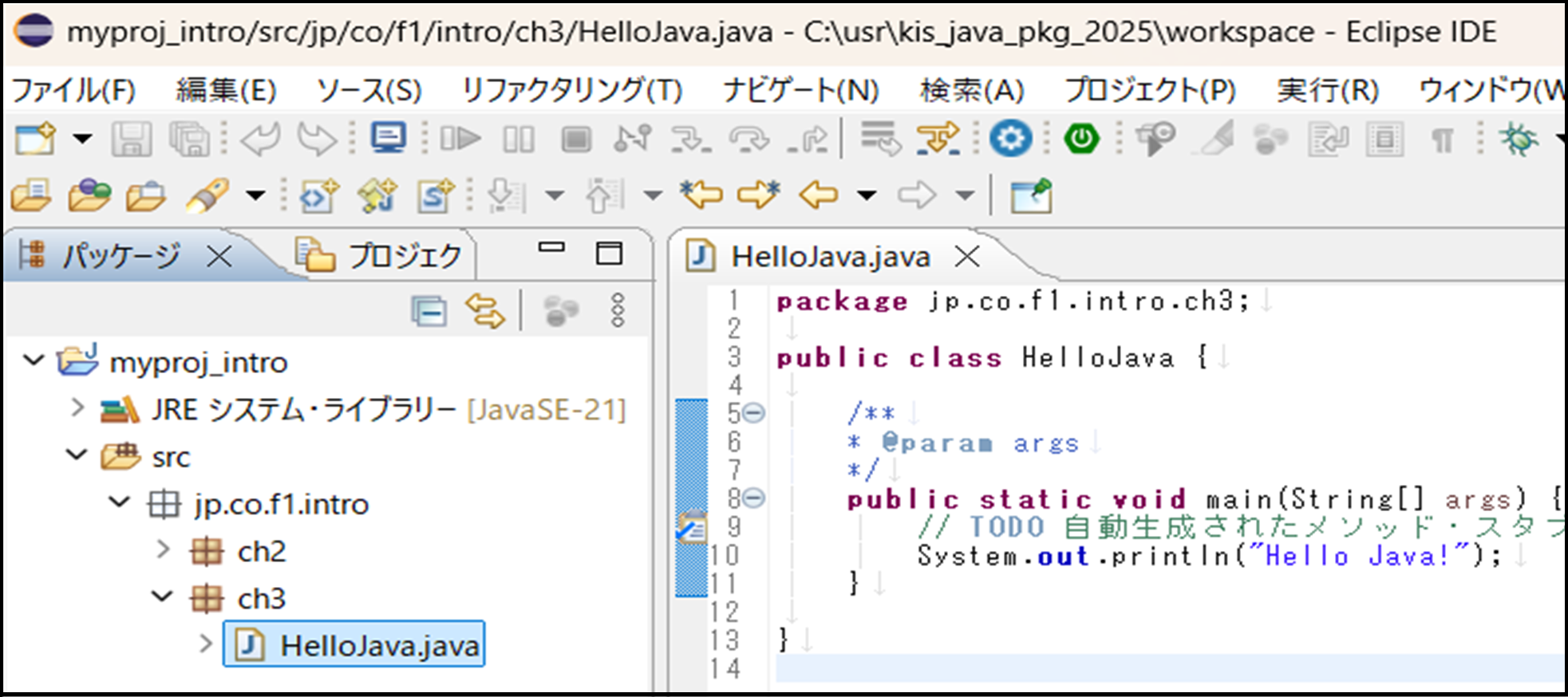 ② パッケージ :jp.co.f1.intro.ch3