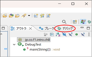 1. Eclipseの右上の部分にある、「デバッグ」という項目をクリック