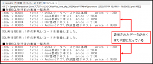 System.out.println("■登録SQL発行前の書籍一覧表示");