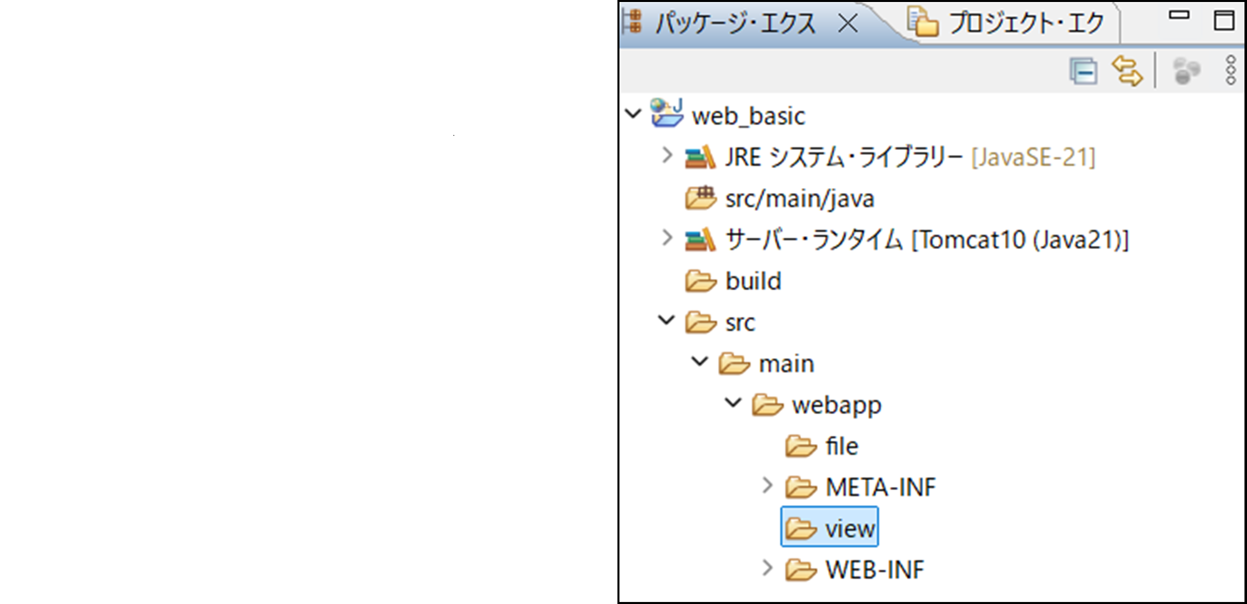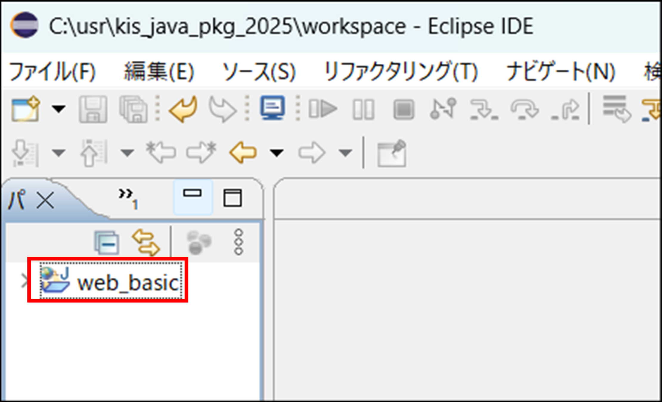 パッケージ・エクスプローラー内に「web_basic」という名前のプロジェクトが作成されます。