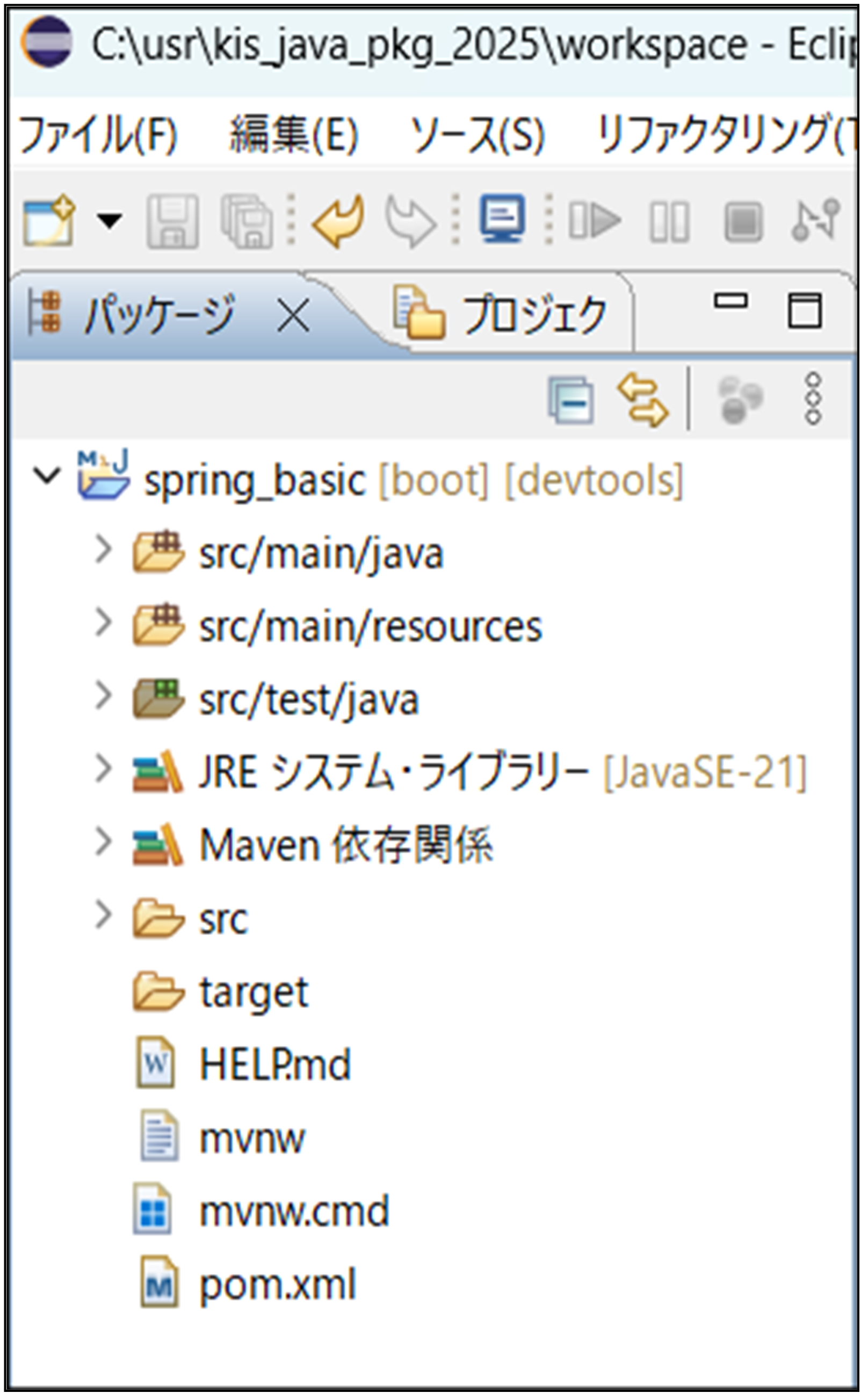 図 3.3 3:パッケージエクスプローラー(作成したばかりのプロジェクトを開いた状態)