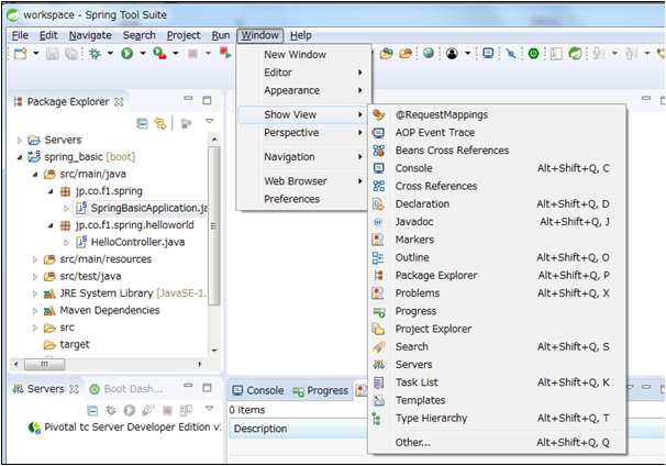 Eclipseには、このほかにも多数のビューが用意されています。が、それらはデフォルトでは画面に表示されていません。では、これらのビューを呼び出して利用するにはどうすればよいのでしょうか。
