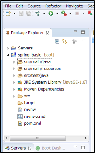 「Servers」タブの右側にある「Boot Dashboard」タブをクリックすると、表示が切り替わります。これは、本書で使うSpring Bootフレームワークの機能を利用するためのビューです。