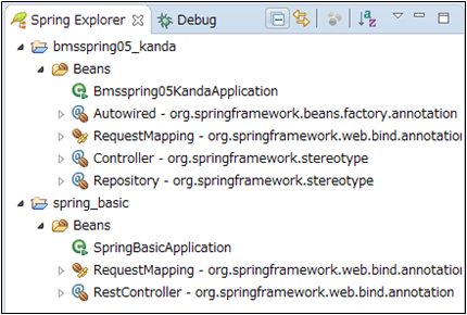 Spring Bootで開発されたアプリケーションは、一般的なサーブレットコンテナ(Javaサーバー)でそのままデプロイして動かすのではなく、アプリケーション内蔵のサーバープログラムによって実行されます。このダッシュボードで、Bootアプリケーションの起動やリスタートなどを行なえます。