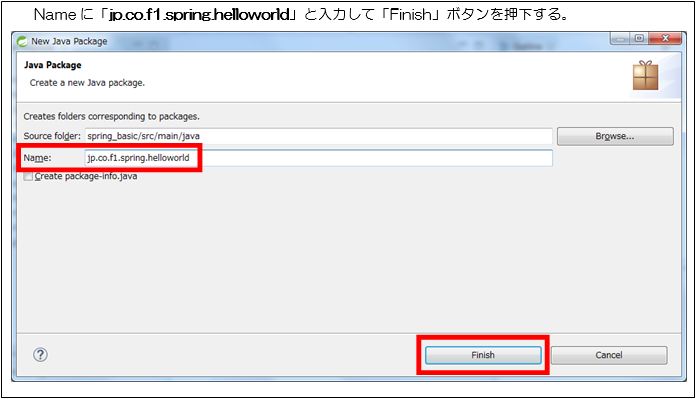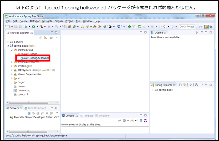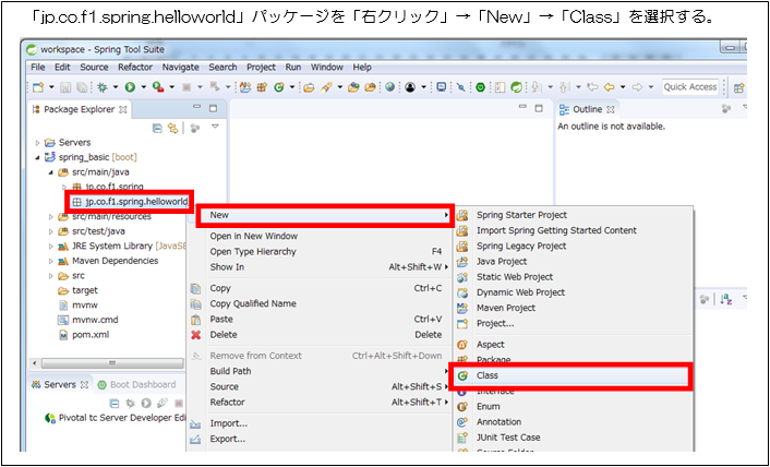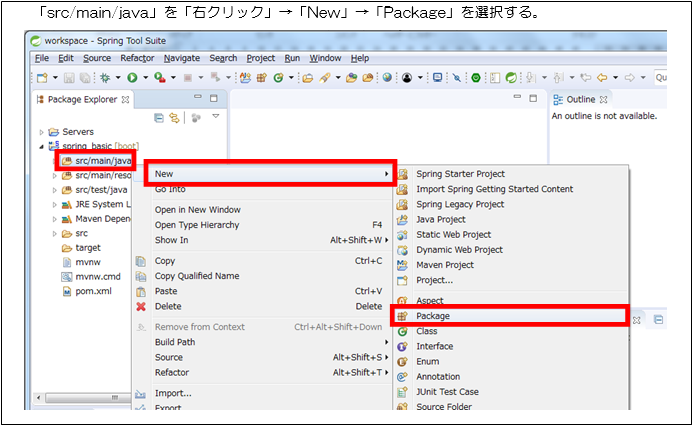 Springスタータープロジェクト・パッケージ・フォルダー作成を行う。