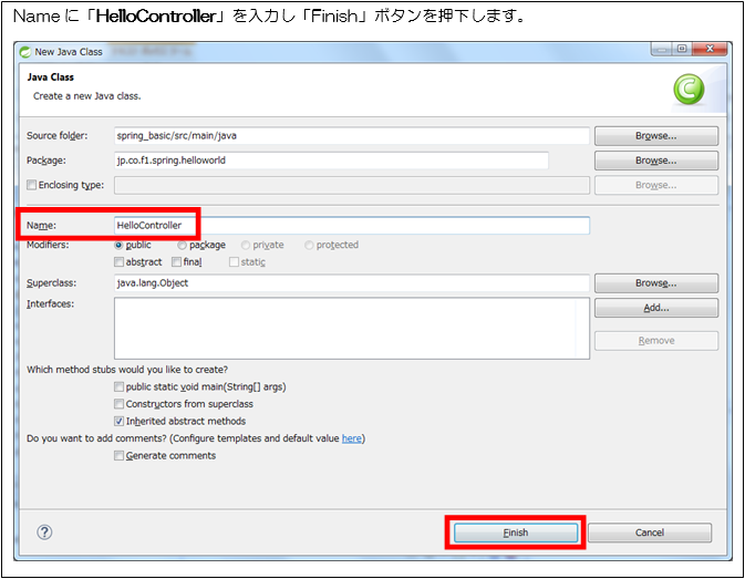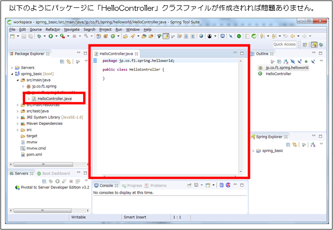 「HelloController.java」クラスファイルの作成とソースコードの記述