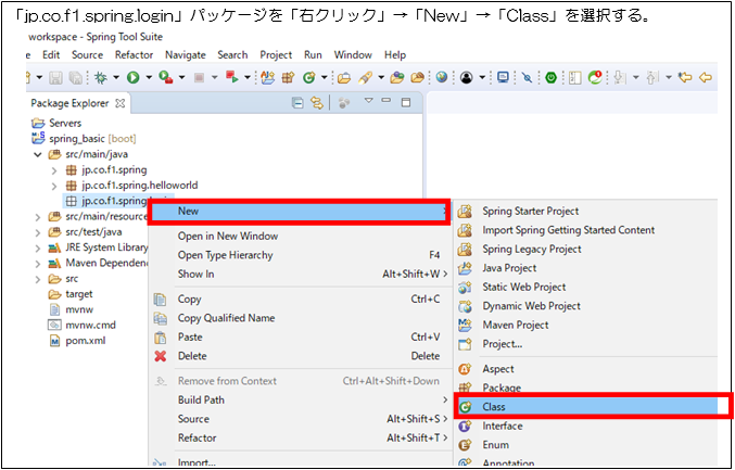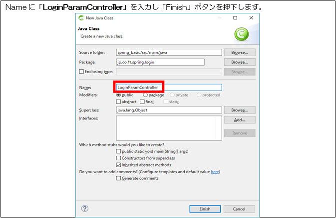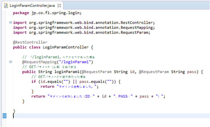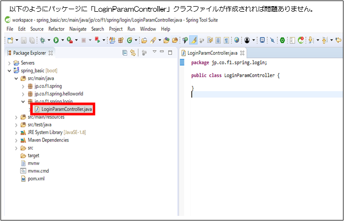 ②「LoginParamController.java」クラスファイルの作成とソースコードの記述