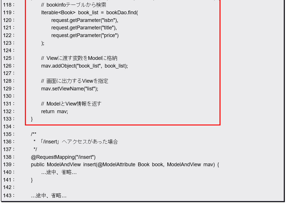 3 2で作成した「BookDao.java」ファイルに以下に示すソースコードを記述する。