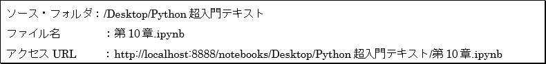 アクセスURL   :http://localhost:8888/notebooks/Desktop/Python入門テキスト/第10章.ipynb
