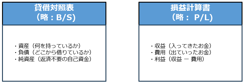 という2つの財務諸表を例として、どんな情報で構成されているかを確認します。