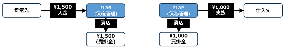決済とは、まだ完了していない伝票を、売掛金であれば 入金消込、買掛金であれば 支払消込 を行い