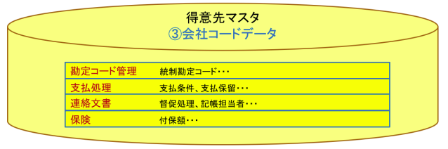 ③ 会社コードデータ:会社ごとの会計条件(支払条件、勘定設定など)