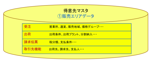① 販売エリアデータ:販売組織・流通チャネル・部門ごとの取引条件(価格、担当者など)