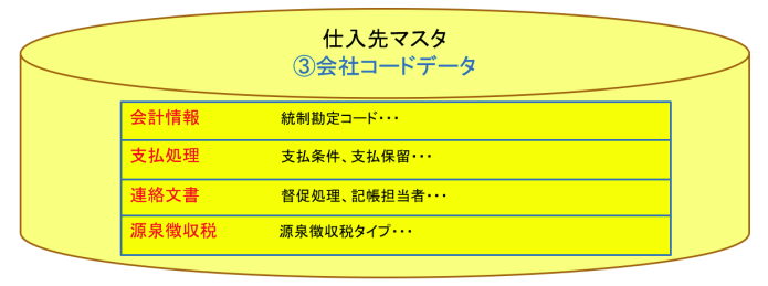 ③ 会社コードデータ:会計管理に関連し、特定の会社コードにのみ有効