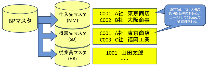 後続ページでは BP マスタの接続先にあたる従来の仕入先マスタのままで説明する。
