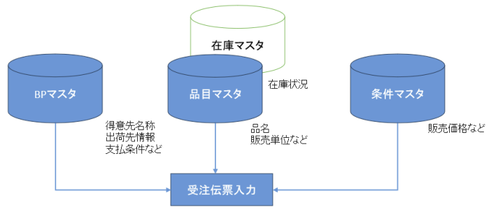 1つの受注伝票を入力するために必要なデータを、各マスタで提供する形になっています。