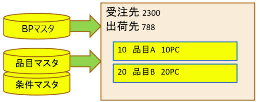 サンプル例は右側のピンク色のボックスが受注伝票を表しています。