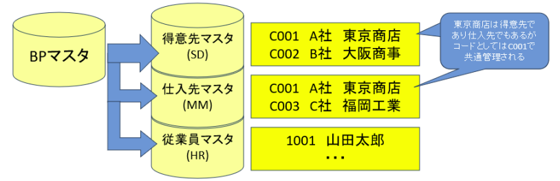 後続ページでは BP マスタの接続先にあたる従来の得意先マスタのままで説明します。